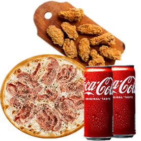 1 Pizza Familiale au choix + 12 Chicken Wings + 1 Maxi Cola Cola 1.25L.