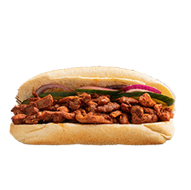 Poulet mariné*, olives, poivrons + Sauce au choix + Frites.